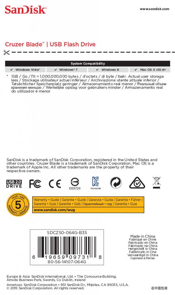 Met zijn stijlvolle, compacte design en grote capaciteit, maakt de Cruzer Blade USB-flashdrive het makkelijk om te back-uppen, , overdragen en uw bestanden te delen.