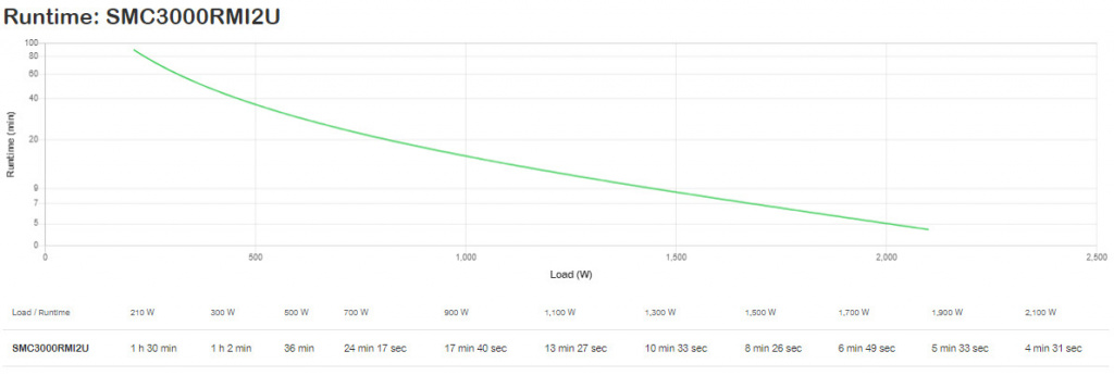 De te verwachten accuduur lees je eenvoudig af in de runtime grafiek, je vindt deze terug tussen de productafbeeldingen. Je kunt zo eenvoudig zien hoelang de ups bij een bepaalde belasting noodstroom levert.