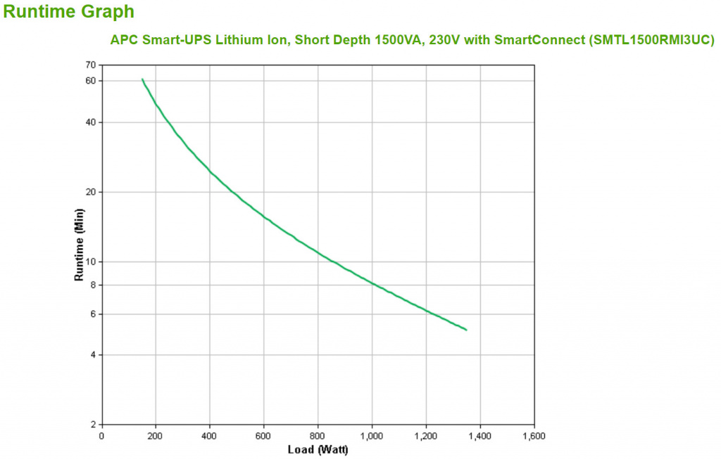De te verwachten accuduur lees je eenvoudig af in de runtime grafiek, je vindt deze terug tussen de productafbeeldingen. Je kunt zo eenvoudig zien hoelang de ups bij een bepaalde belasting noodstroom levert.