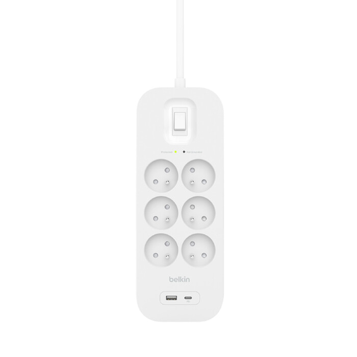 Belkin Connect. Surge energy rating: 650 J, Aantal AC uitgangen: 6 AC-uitgang(en). Kleur van het product: Wit, Toepasbaarheid: Universeel. Snoerlengte: 2 m. Aantal producten inbegrepen: 1 stuk(s)