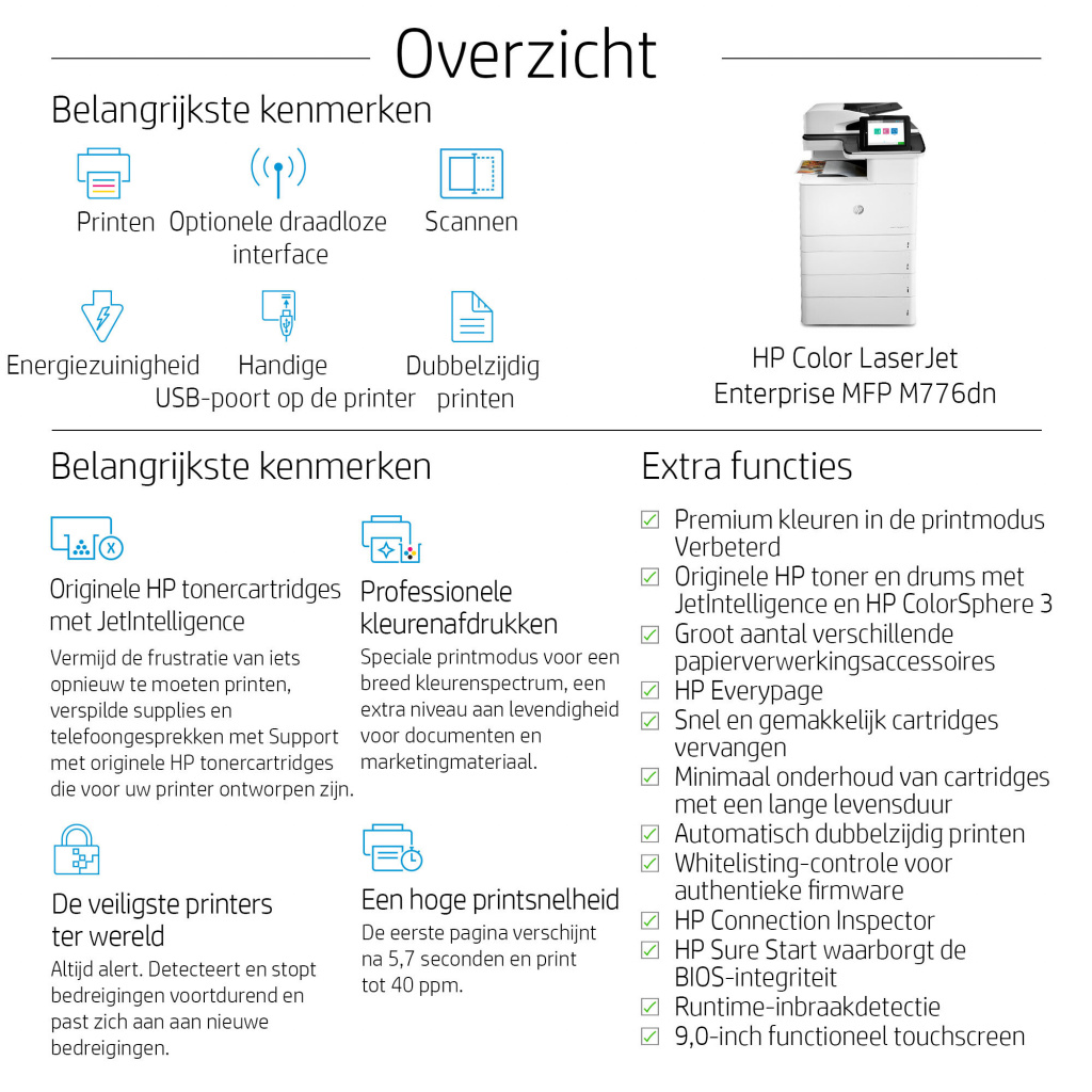 HP Color LaserJet Enterprise LaserJet Enterprise M776dn Multifunction Kleur Printer, Alleen Ethernet; Kopieerapparaat, scanner