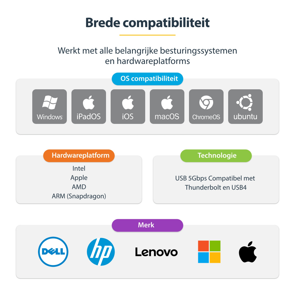 Sluit deze USB-C naar Ethernet-adapter gewoon aan op de USB-poort van uw laptop en maak verbinding met een netwerk. De Realtek chipset van de netwerkadapter biedt native driver-ondersteuning voor Windows (10/11, ARM ondersteuning) Macbooks (MacOS), Chromebooks (ChromeOS), Snapdragon, Linux, iPhones en tablets. Windows-besturingssystemen die niet over de driver beschikken, zullen automatisch de download van de software aanvragen via de adapter waardoor een snelle en effectieve installatie zonder internet mogelijk is.