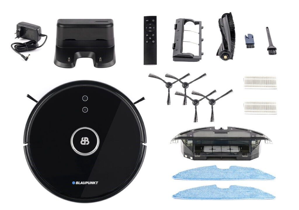 Blaupunkt Bluebot Xtreme. Stofzuigercontainer type: Zakloos, Kleur van het product: Zwart, Vorm: Rond. Stofcapaciteit (totaal): 0,6 l, Geluidsniveau: 70 dB, Stofcapaciteit (stofzuiger): 0,3 l. Batterijtechnologie: Lithium-Ion (Li-Ion), Capaciteit van de accu/batterij: 5000 mAh, Looptijd: 230 min. Hoogte: 100 mm, Breedte: 350 mm, Diepte: 350 mm
