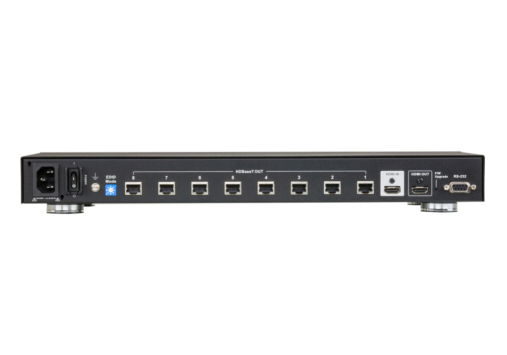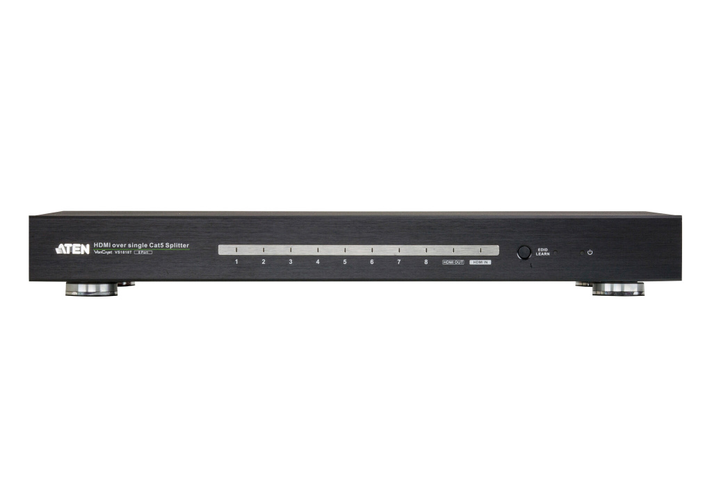 The VS1818T HDMI over single Cat 5 Splitter provides a fast and efficient way of switching high definition video from one input source to 8 displays. Incorporating suggested HDBaseT receivers*, the VS1818T can be a complete solution ideal for any installation that requires HDMI content to be delivered to multiple destinations, located up to 100m away from the source.