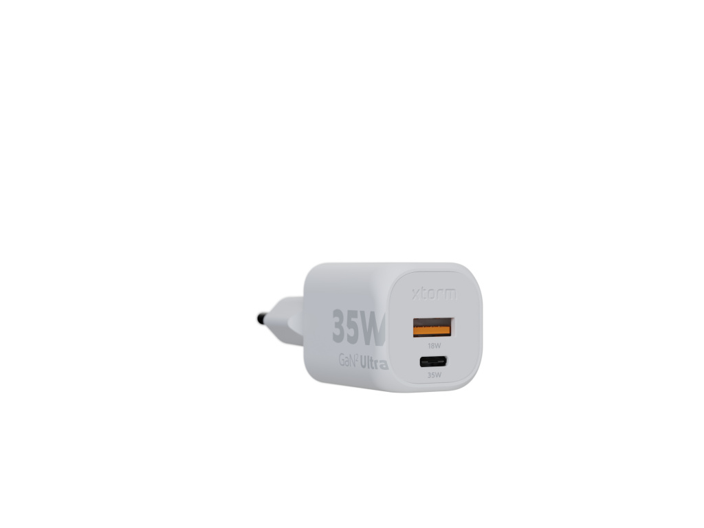 Laat je niet misleiden door zijn formaat, deze 35W adapter is een echte krachtpatser. Met GaN² Ultra – de volgende generatie GaN-technologie – kan onze lader veilig en efficiënt meer vermogen verwerken in een nog kleiner formaat.